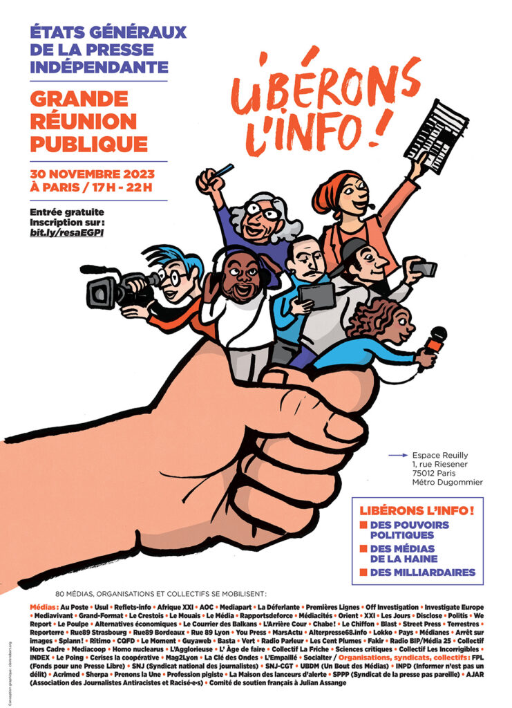 This initiative, proposed by the Free Press Fund, is a response to the Presidential General Assembly on Information called for by the Élysée Palace. We look forward to seeing you on 30 November for a major public meeting in Paris, which will be followed by regional events.
