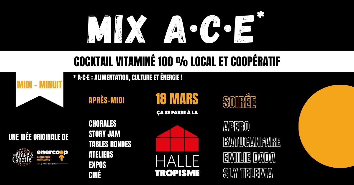 À la croisée des chemins entre l’Alimentation, la Culture et l’Énergie, Les Ami·e·s de La Cagette, association qui a permis la naissance de la coopérative La Cagette et la coopérative Enercoop Languedoc-Roussillon se sont réunies pour proposer un programme qui suscite la curiosité. Faire ensemble, dans la joie et avec sensibilité, l’événement Mix A·C·E a pour objectif de mettre en avant cette culture citoyenne de la coopération.